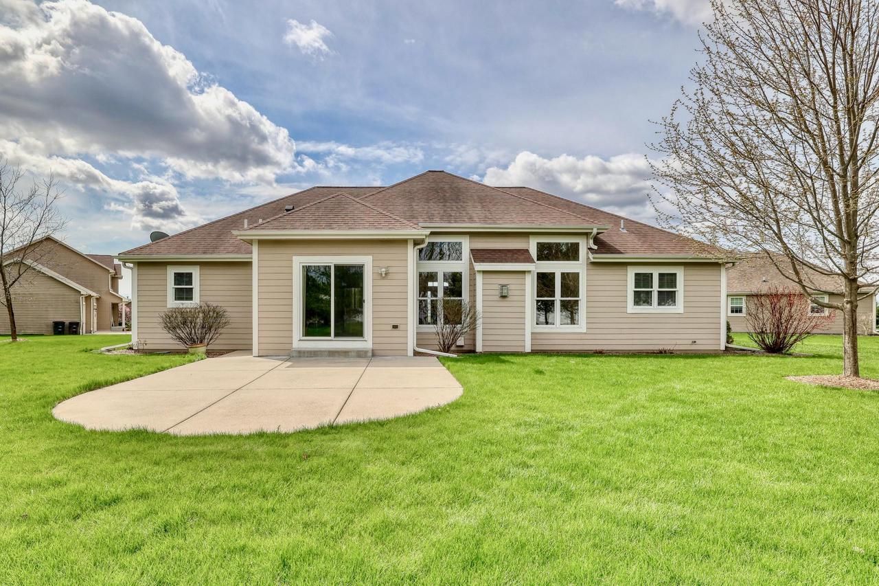 Beautiful custom-built 3 bedroom 2 bathroom Ranch home (2013 Design Builders) at the end of the Cul-De-Sac. Offers quality craftsmanship w/ a functional open layout. Kitchen features ample counter space, breakfast bar, pantry & SS appliances - open to the living room & dining area. Split bedroom design w/ primary ensuite, walk-in closet & tiled bath opposite 2 large bedrooms & full bathroom. Home highlights include hardwood floors, high ceilings, dedicated office/den & main floor laundry/mud room. Oversized 3-car garage. Enjoy the private .6-acre lot from the spacious concrete patio. Freshly painted exterior & refreshed landscaping enhance curb appeal. Located in the Village of Mukwonago in the desirable Mukwonago Schools. Close to highway access & downtown. Comfort, space & convenience!